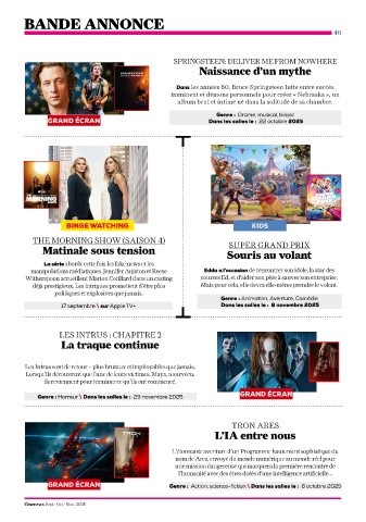 GRAND ÉCRAN Dans les salles le : 22 octobre 2025