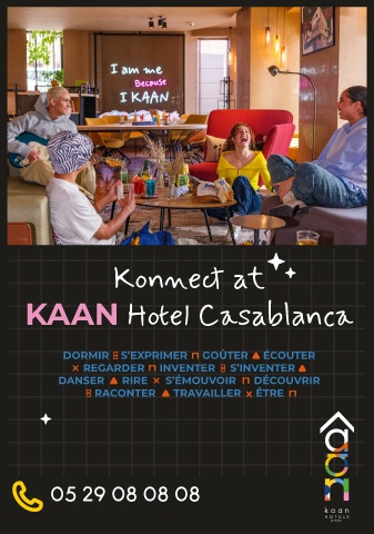 C CINENEWS - KAAN - Print .pdf 1 03/09/2025 17:08 M J Konnect at CM MJ CJ CMJ N KAAN Hotel Casablanca DORMIR S’EXPRIMER GOÛTER ÉCOUTER REGARDER INVENTER S’INVENTER DANSER RIRE S’ÉMOUVOIR DÉCOUVRIR RACONTER TRAVAILLER ÊTRE 05 29 08 08 08
